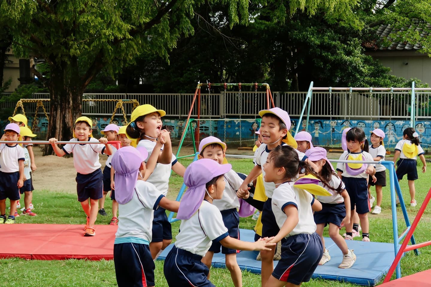 心と体の理想的な成長バランスは「日常の遊び」の中にこそ潜んでいます。友達と遊びに熱中し、手に頑張り豆を作って遊ぶ逞しいこども。転んでも手がつけて、すぐに立ち上がれる子ども。自分でやりたいことを見つけられる子ども。友達と精一杯汗を流し楽しみを共感できる子ども。健全な体は健全な心を育みます。