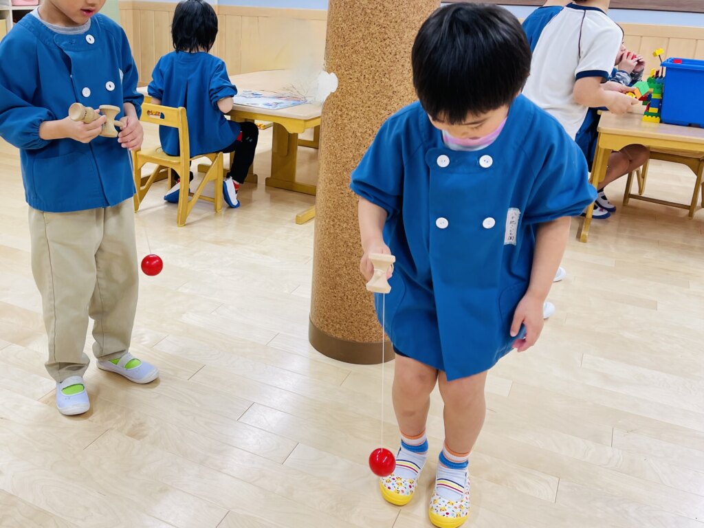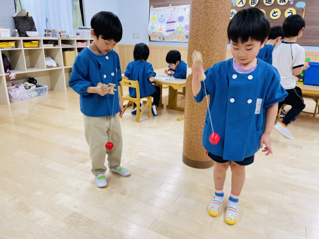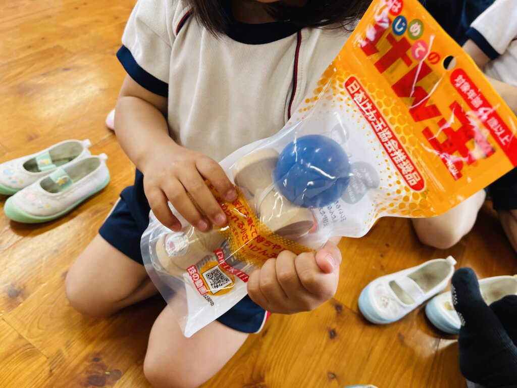 年長さんになった子どもたちへ、ひとり1本の“マイけん玉”を贈りました✨