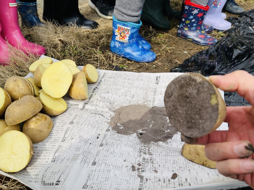 そこに、まるまるゴロゴロとしたじゃがいもの種芋を植えたのですが、