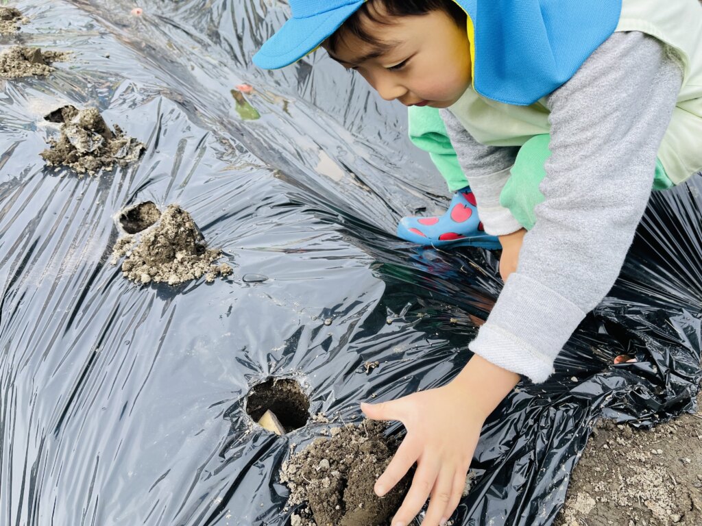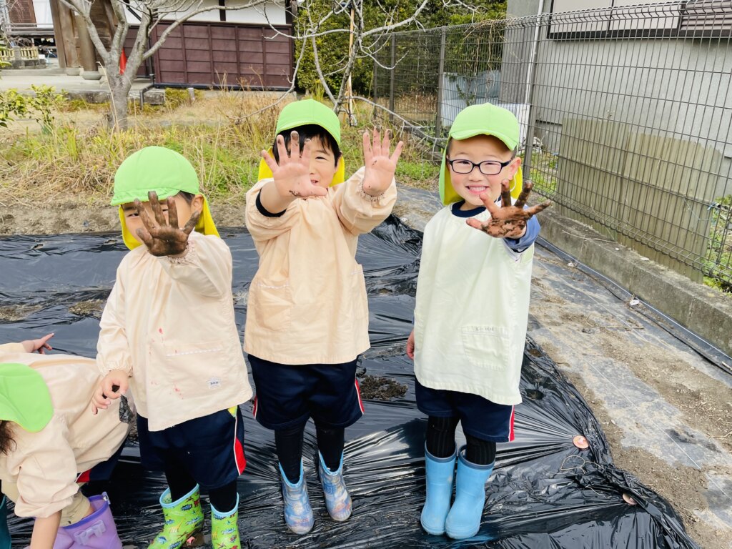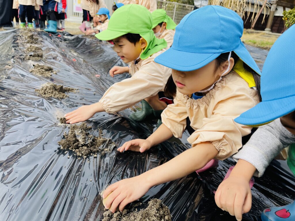数日前、園長先生と担任の先生が畑作りに汗を流し、立派な畝(うね)が完成